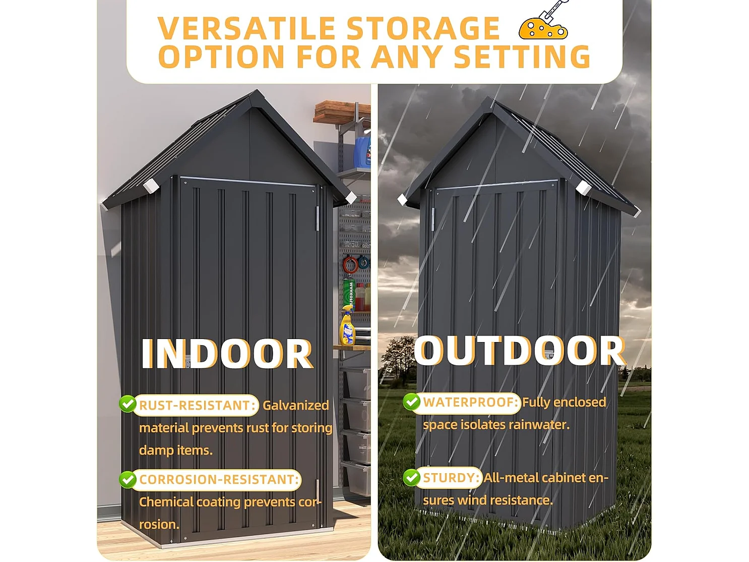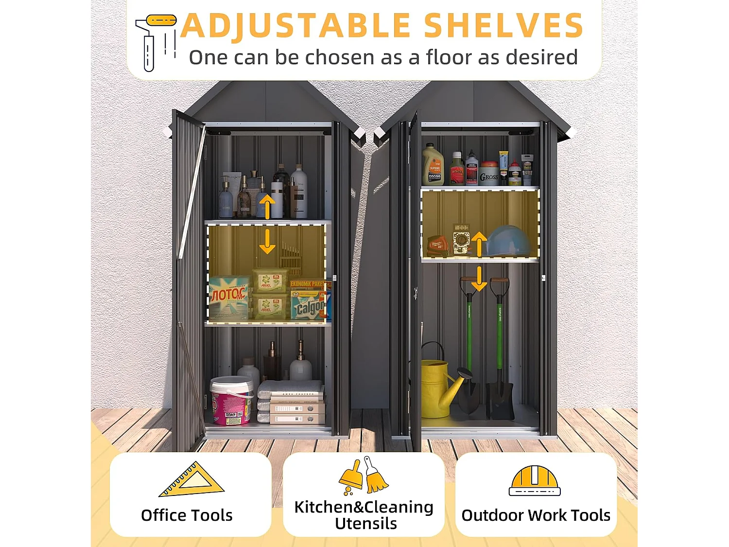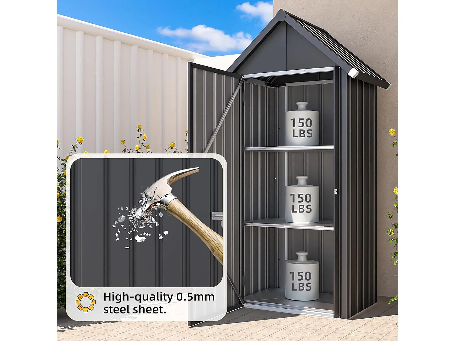 YODOLLA Armoire de jardin Abri de jardin Hangar, Petit abri avec socle Et serrure verrouillable, Acier galvanisé, 86x55x178cm, Gris foncé