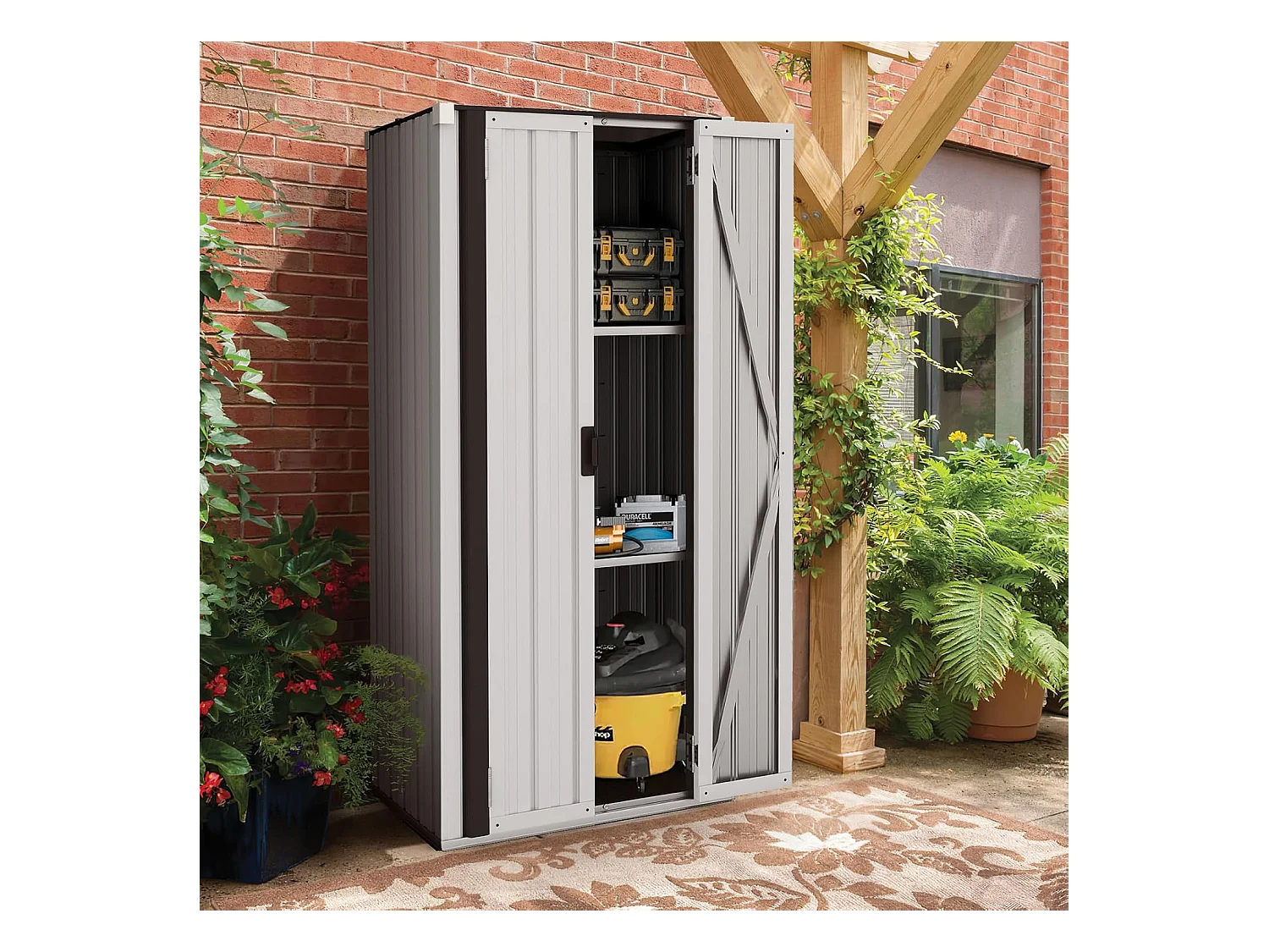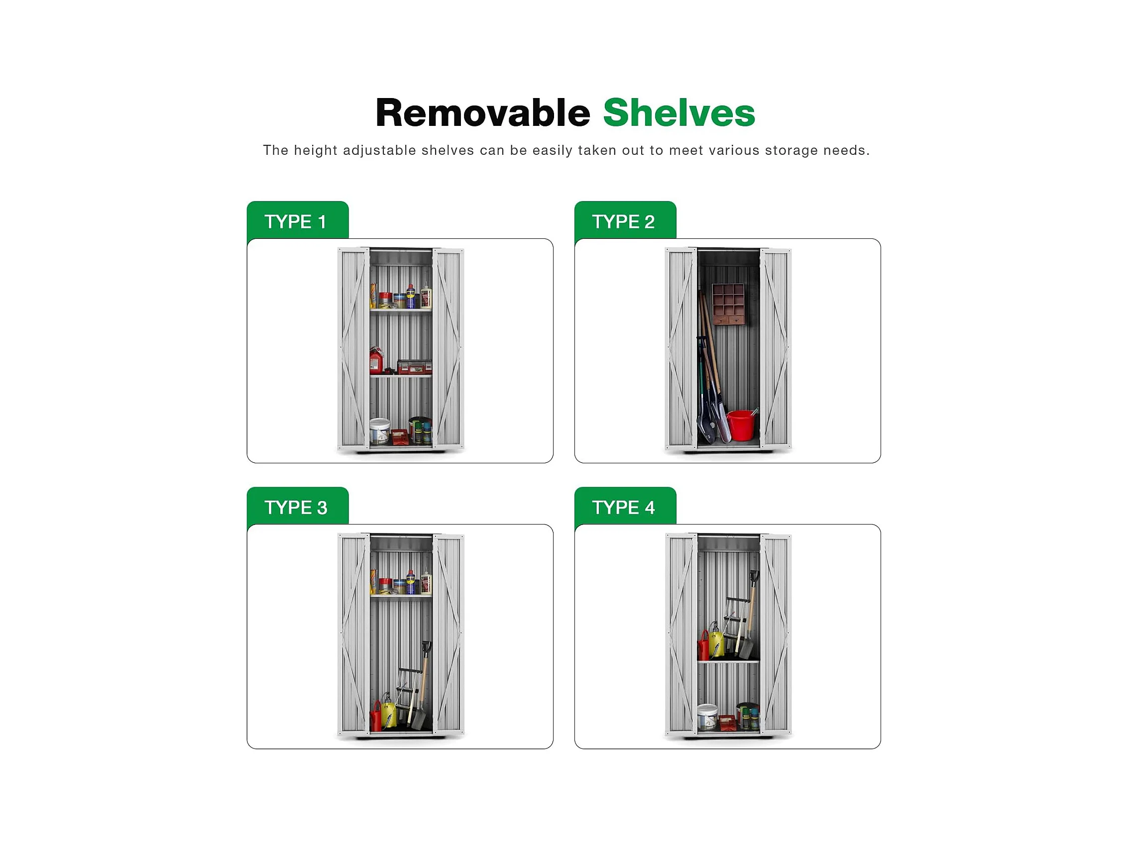 YODOLLA Armoire de Rangement d'extérieur Etanche - Métal - Abri de Jardin à 3 Étagères Modulables - 76 x 55 x 178 CM - Blanche