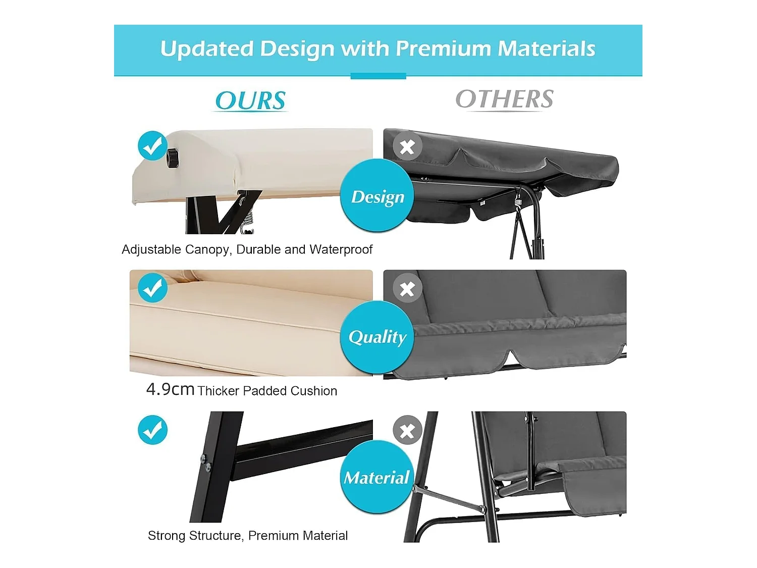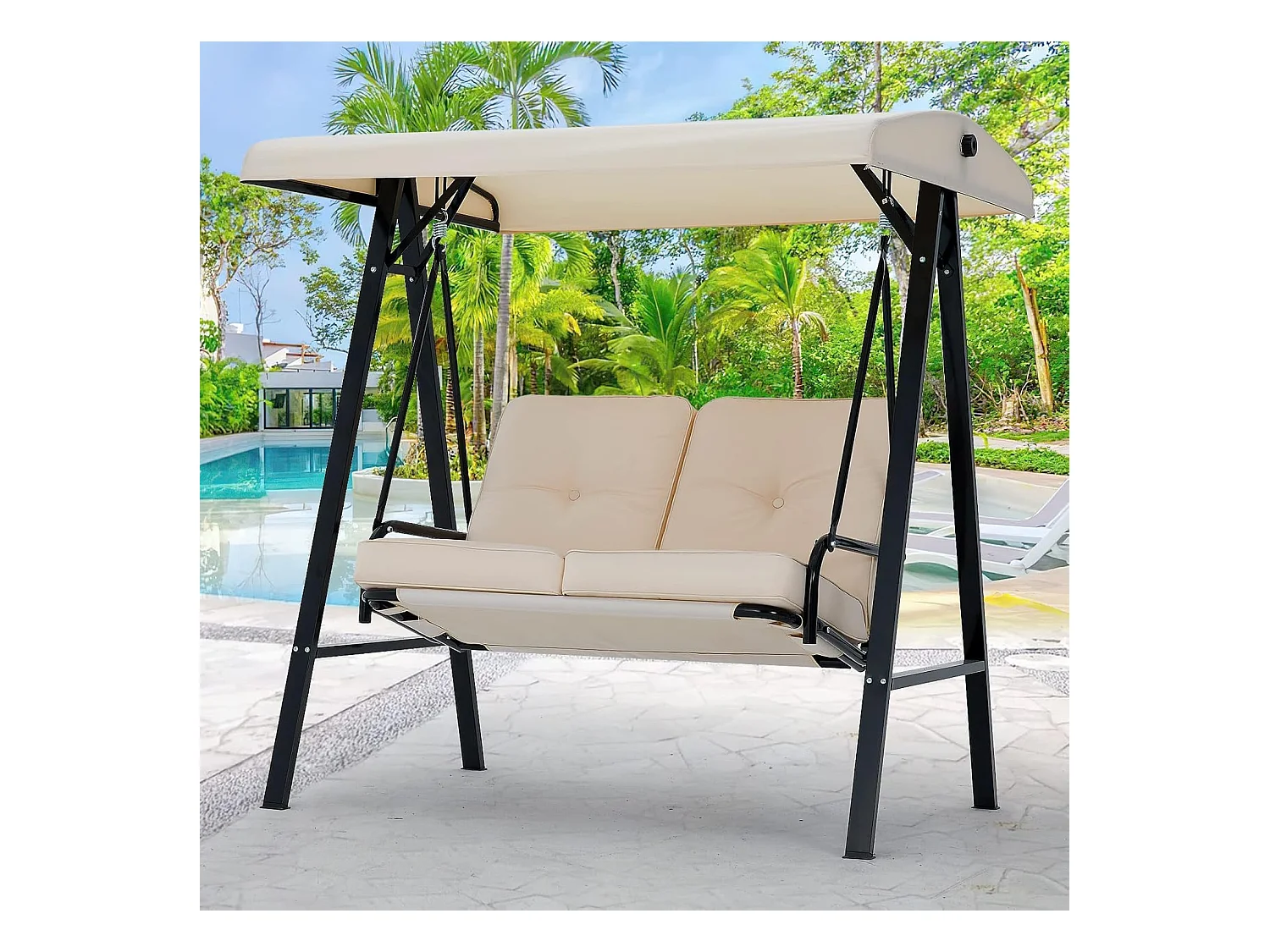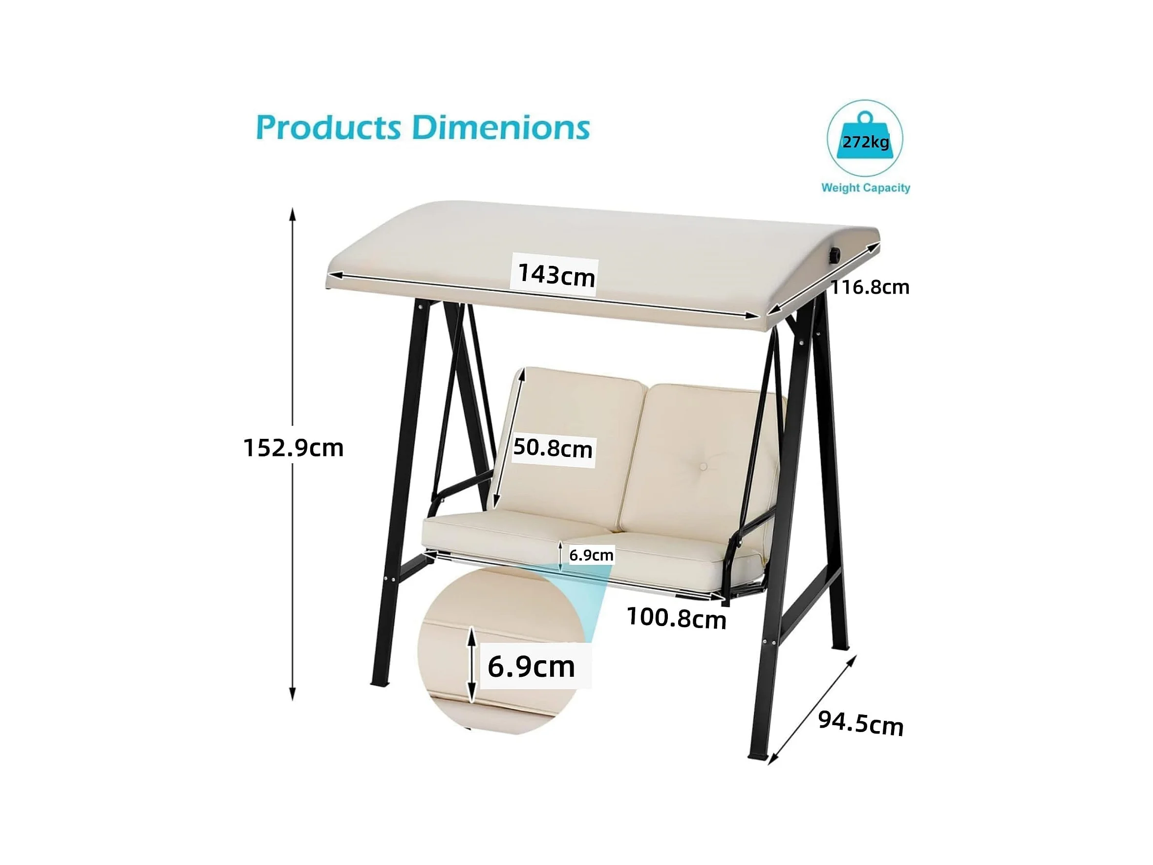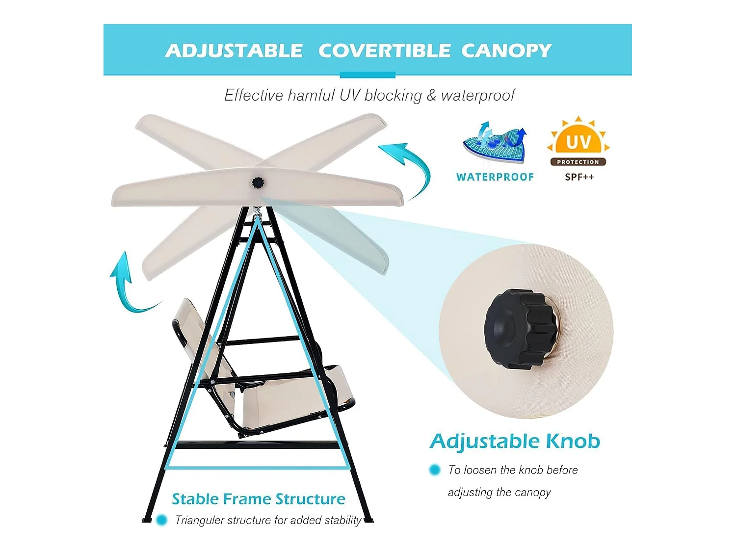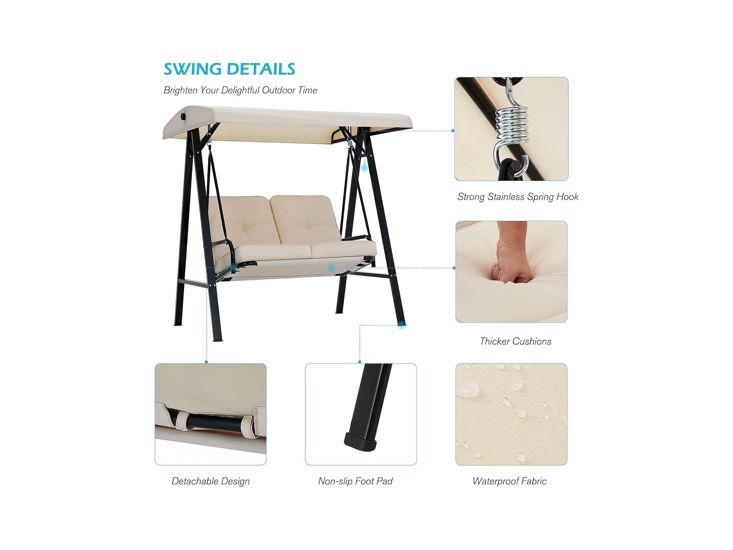 YODOLLA Balancelle de Jardin 2 Places avec Auvant Réglable et Coussins Amovible - 143 x 95 x 153 CM - Beige