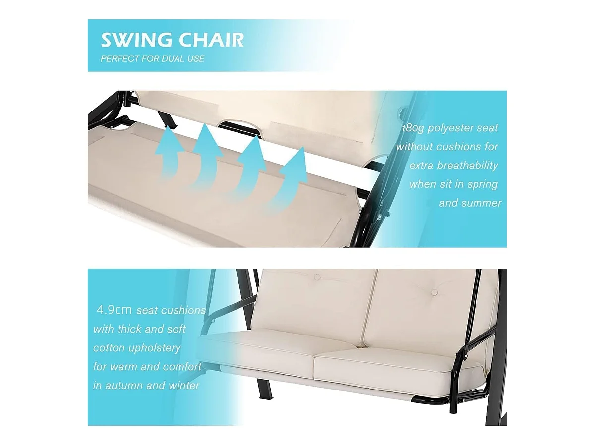 Chaise balançoire de jardin et coussin crème tissu Oxford/acier