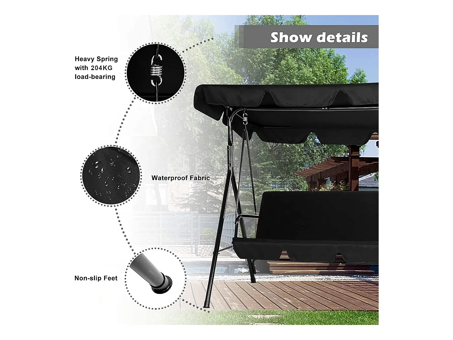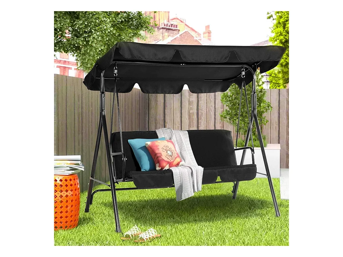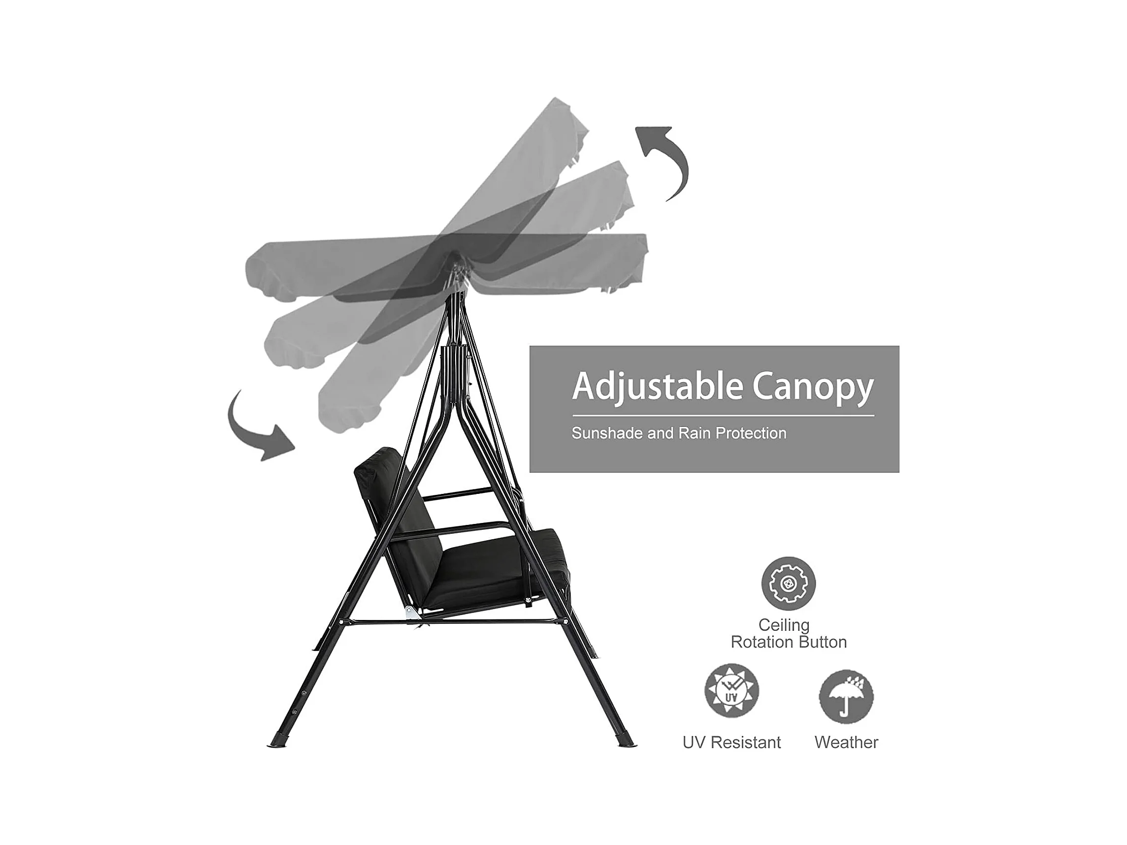 YODOLLA Balancelle de Jardin 3 Places avec Auvant Réglable - 172 x 112 x 150 CM -Métal - Noir