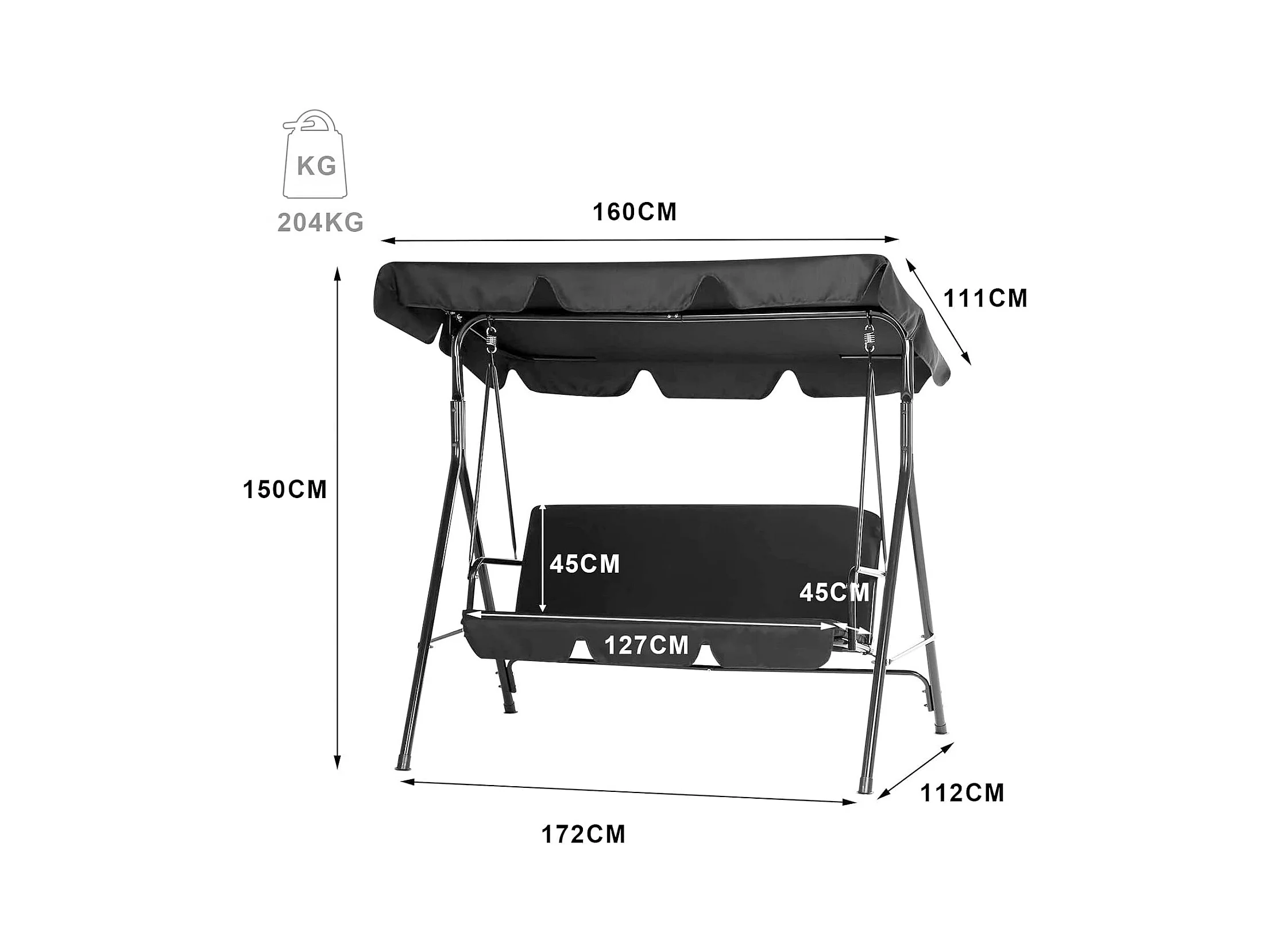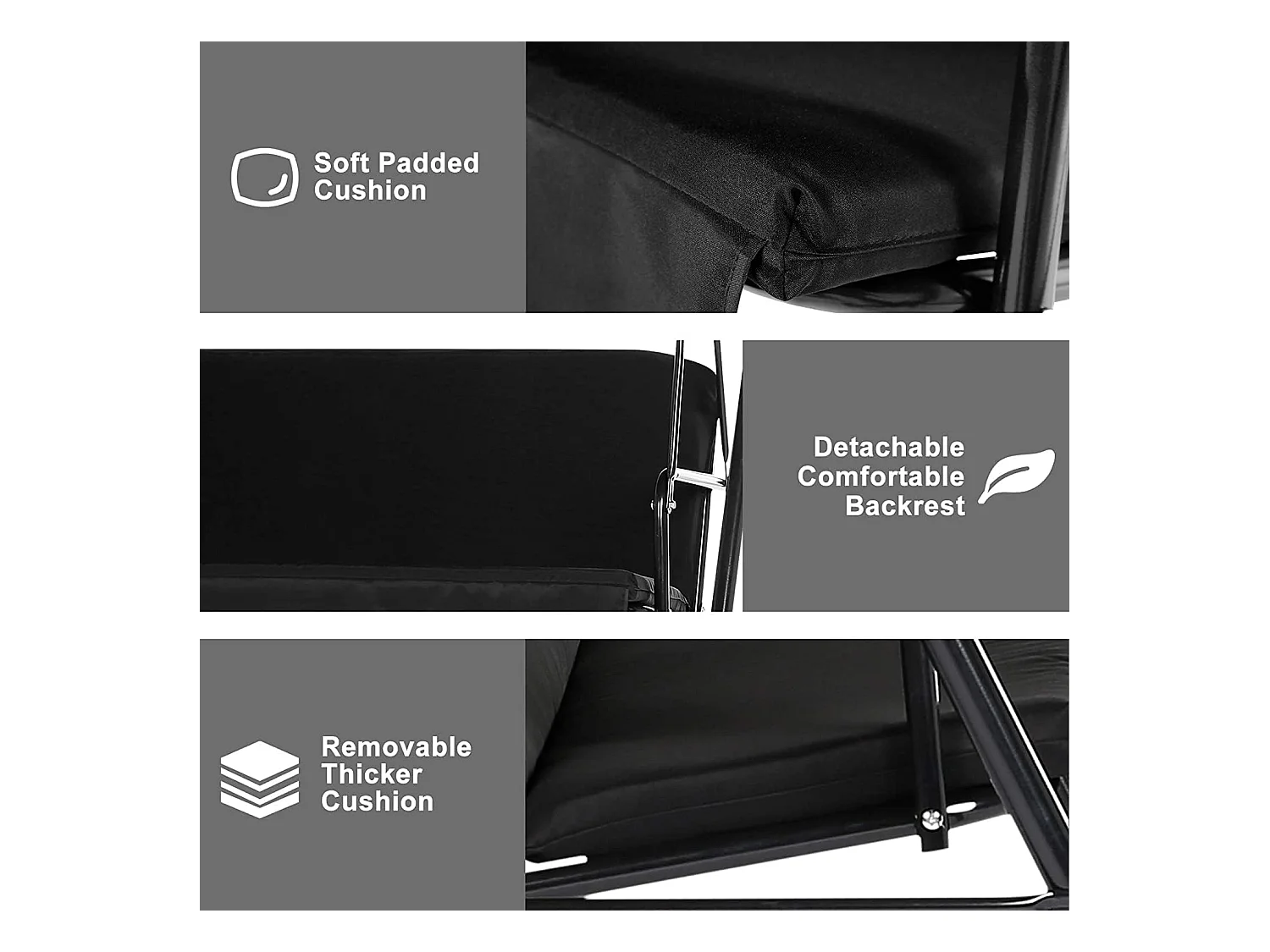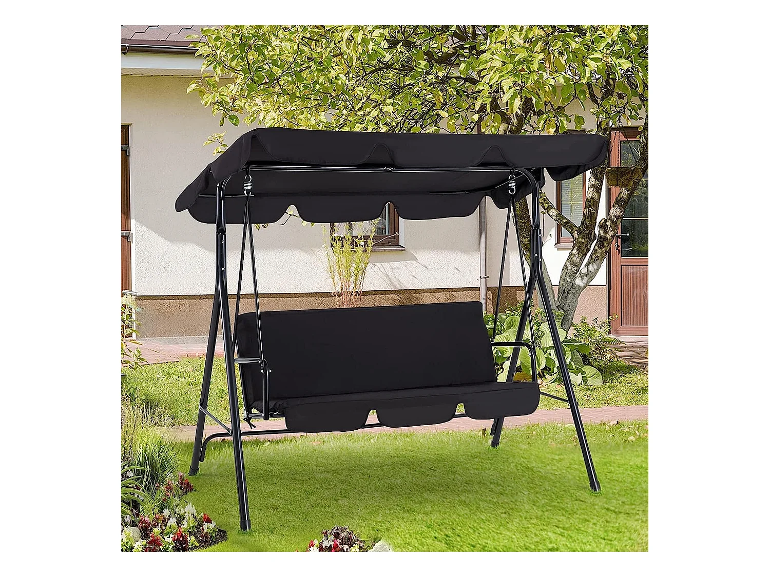 YODOLLA Balancelle de Jardin 3 Places avec Auvant Réglable - 172 x 112 x 150 CM -Métal - Noir