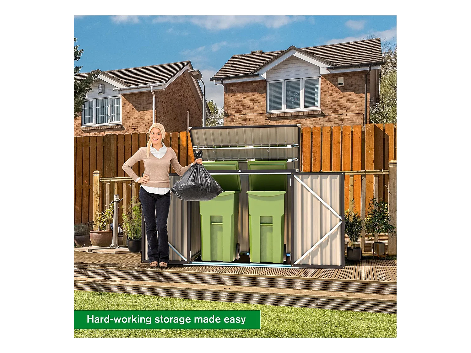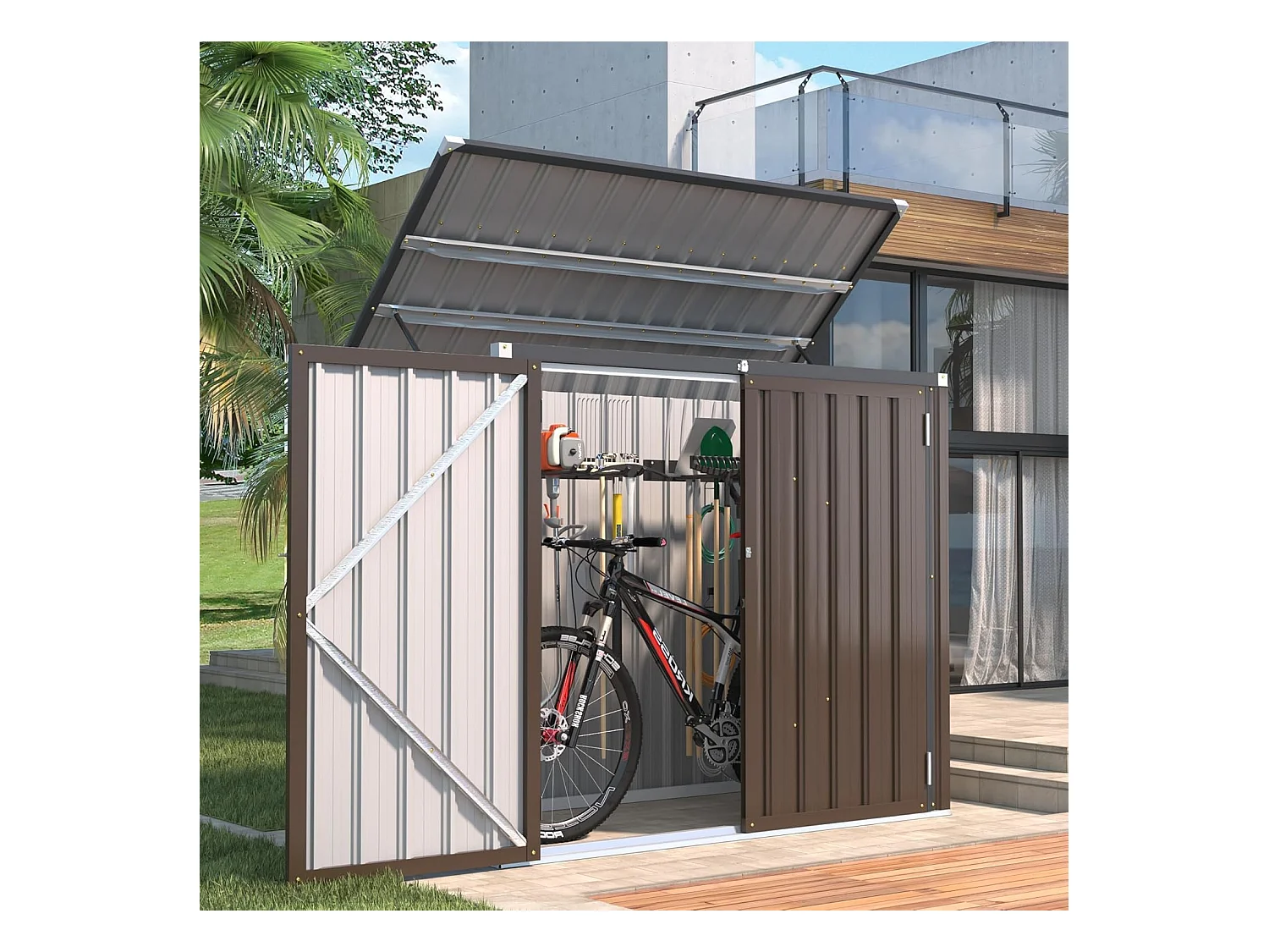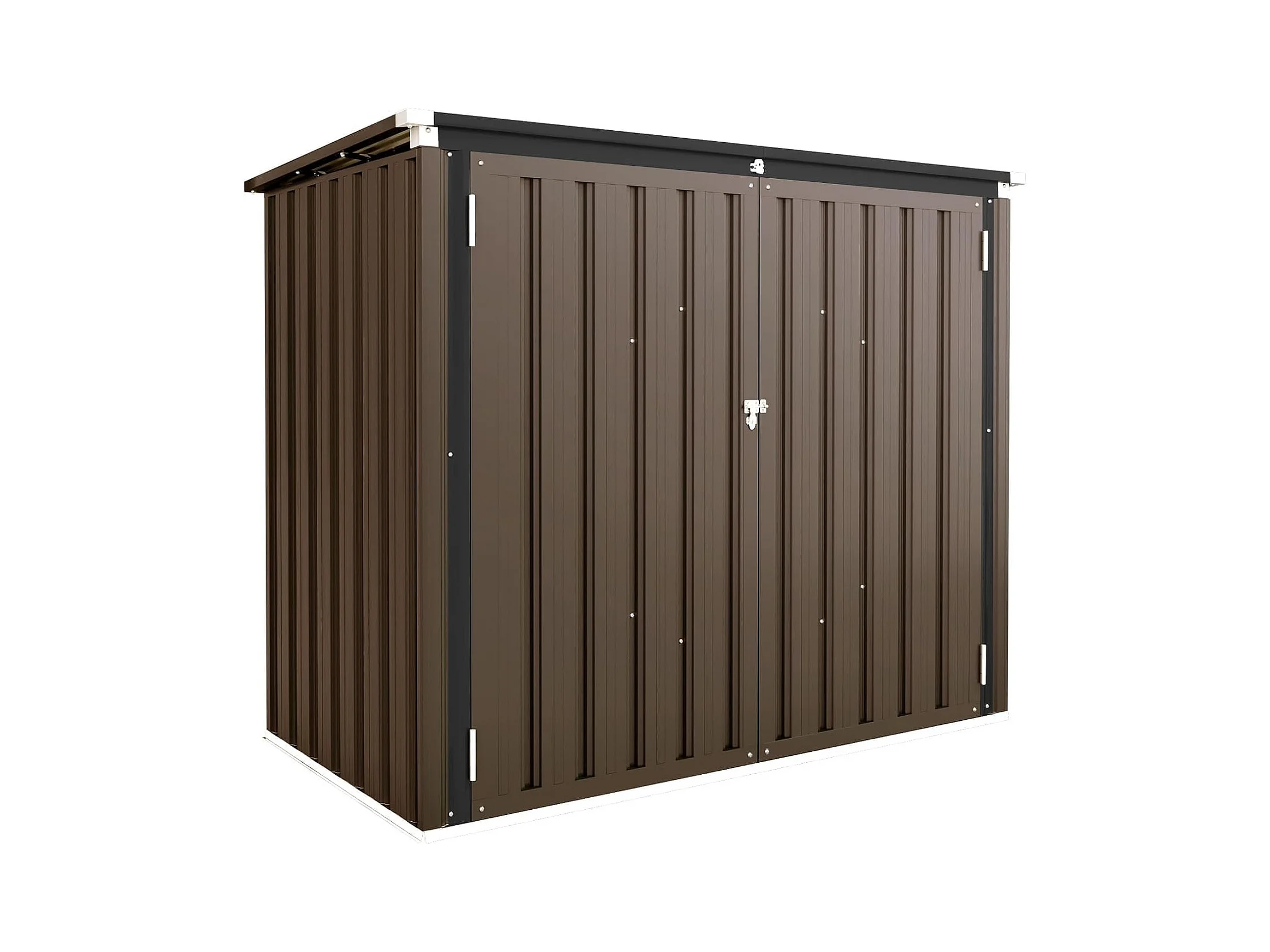 YODOLLA Cache Poubelle Exterieur en Métal, Abri pour 2 Poubelles 240L, Rangement Exterieur pour Outils,Vélo Enfant,150 x 80 x 117.6cm(Brun)