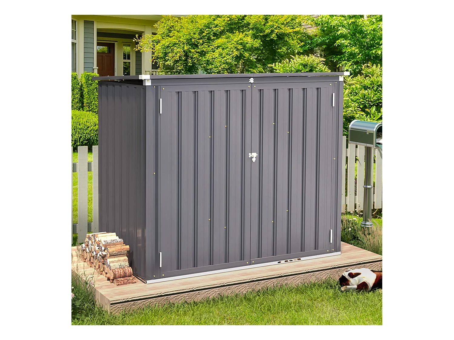 YODOLLA Cache Poubelle Exterieur en Métal, Abri pour 2 Poubelles 240L, Rangement Exterieur pour Outils,Vélo Enfant,150 x 80 x 117.6cm(Gris)