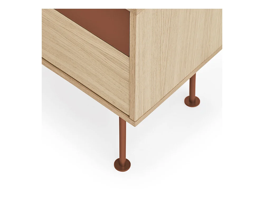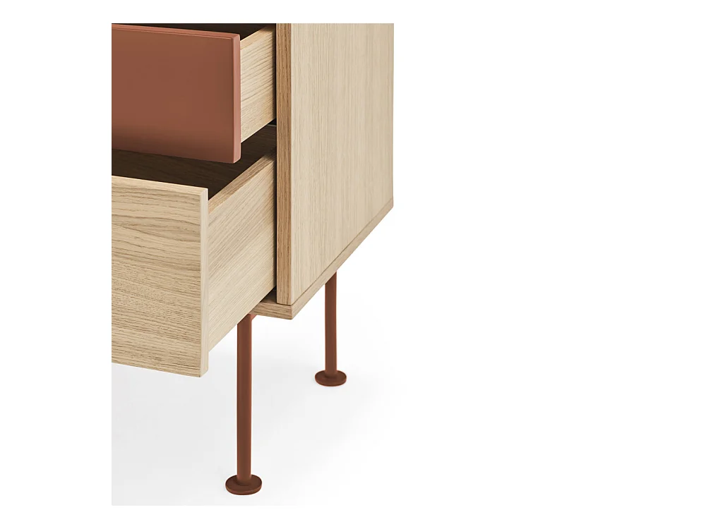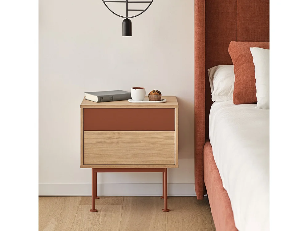 Yoko - Table de chevet 2 tiroirs en bois et métal - Rouge brique
