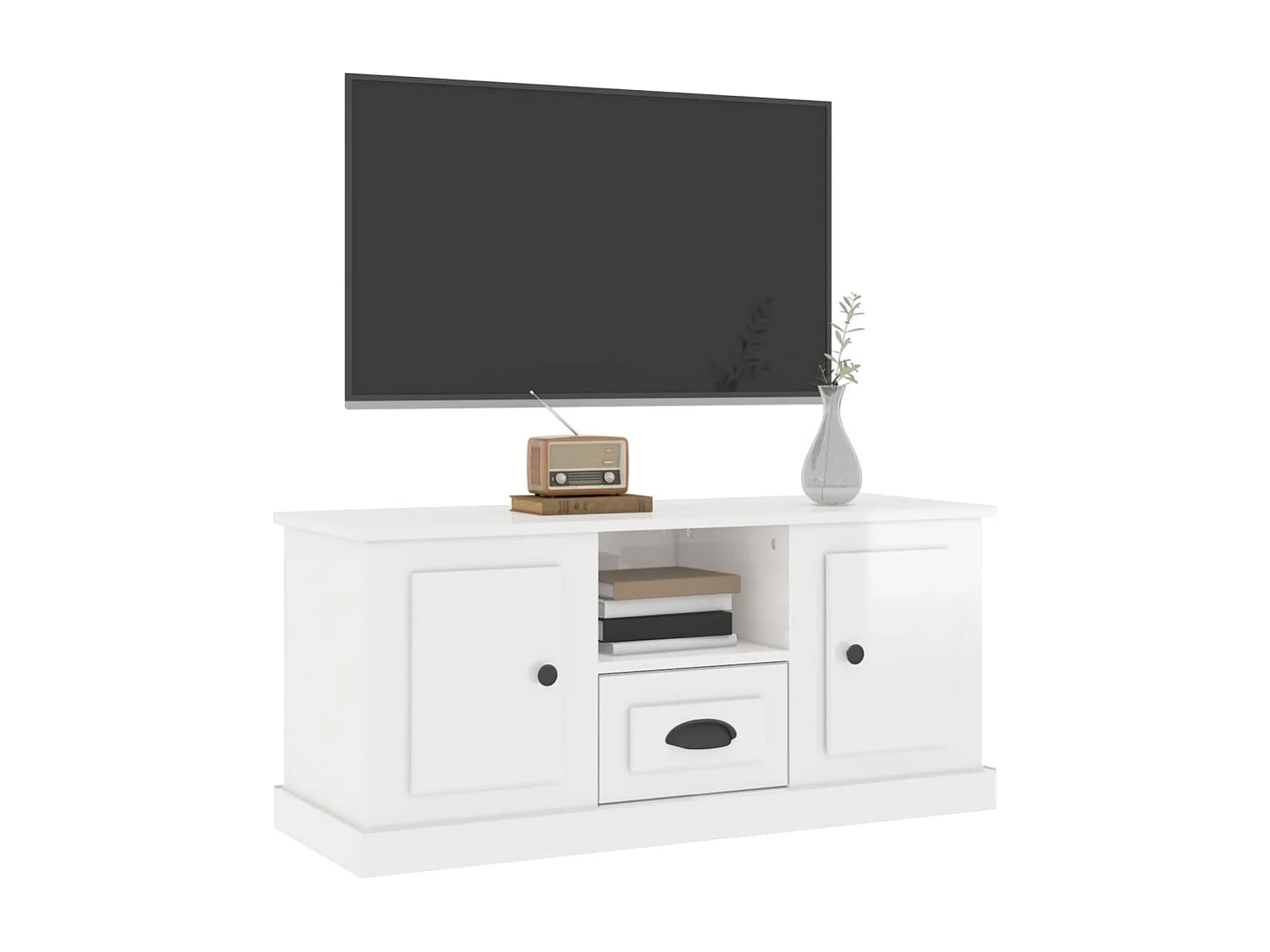 Yolanda Meuble TV blanc brillant 100x35,5x45 cm bois d'ingénierie