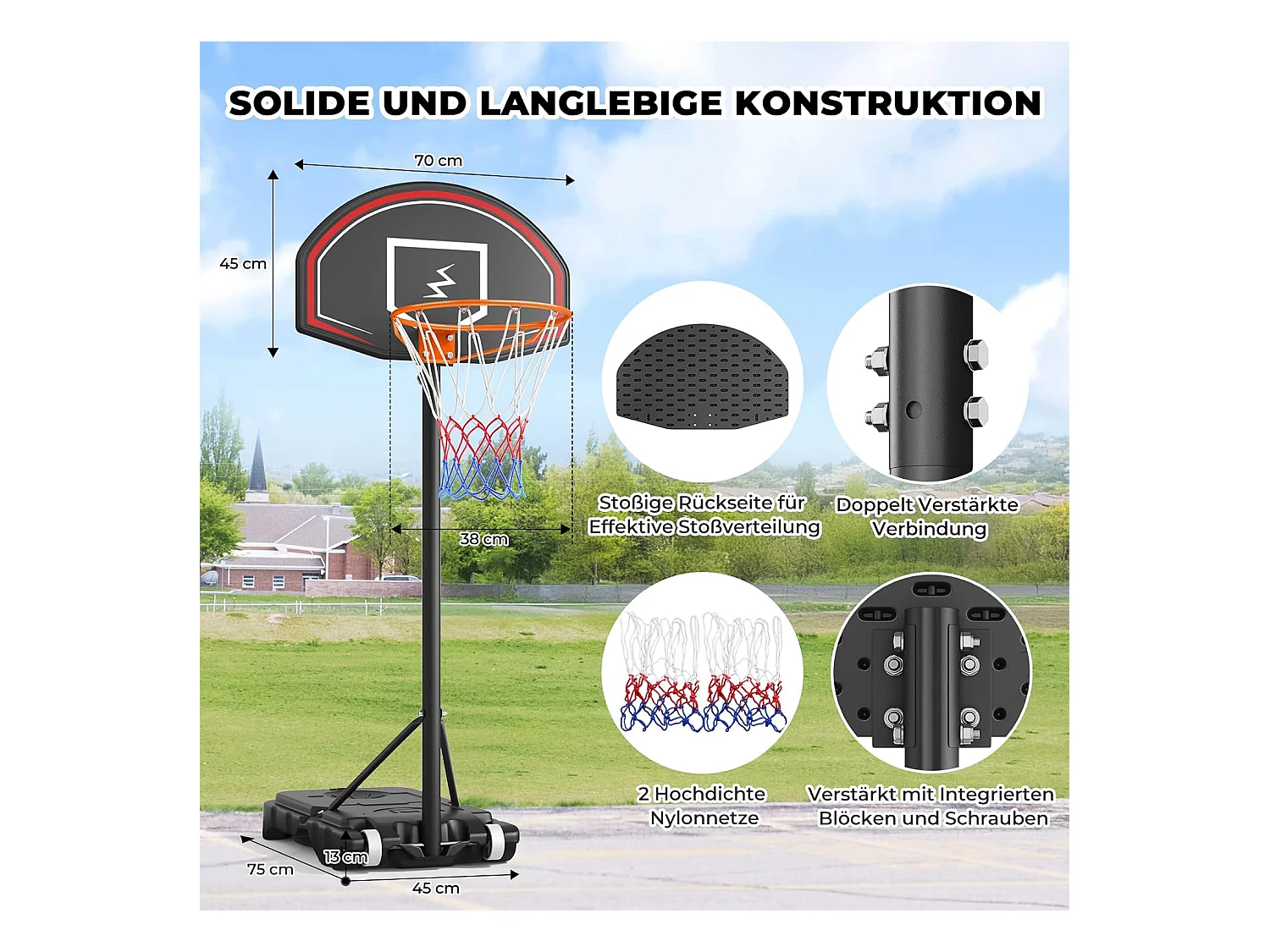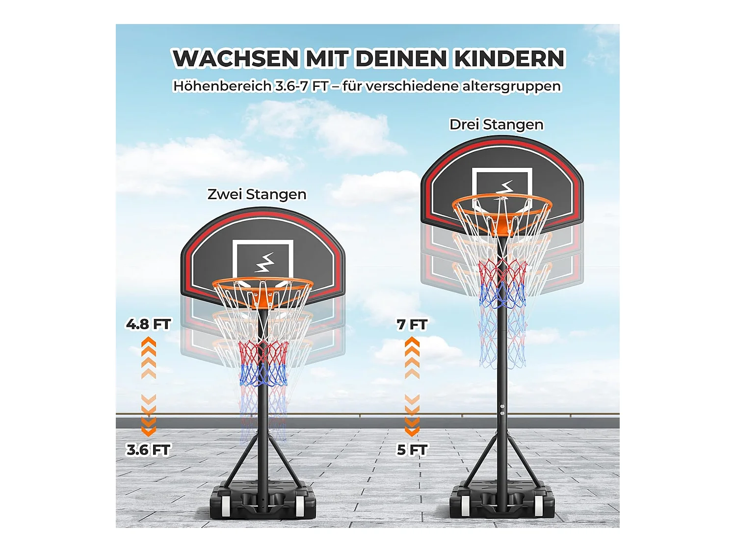 YOLEO Panier de Basketball pour Enfants, Réglable en Hauteur 110-210 cm, Support de Basketball Portable avec Roues