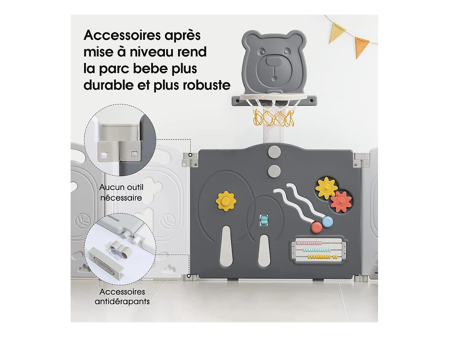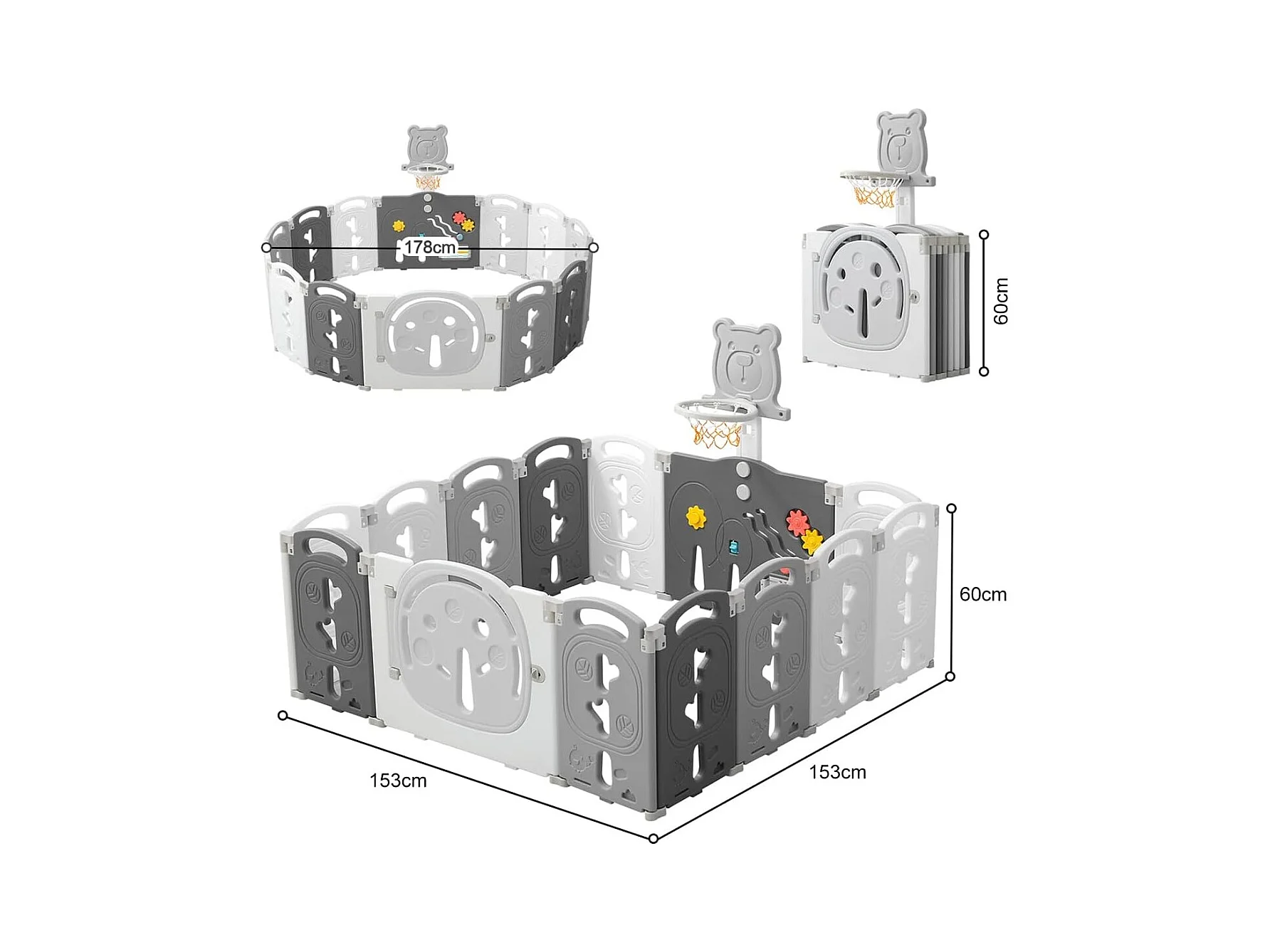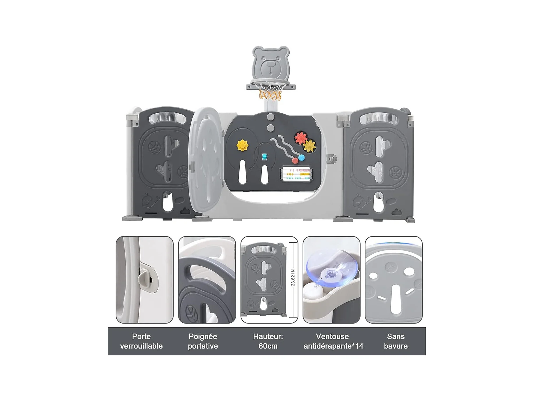 Parc Bébé Yoleo - 12+2 panneaux modulable - avec panier de basket - plastique écologique - 153x153x60cm