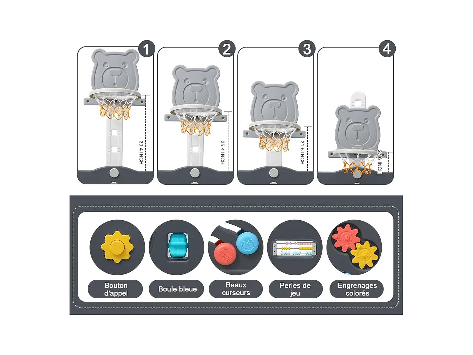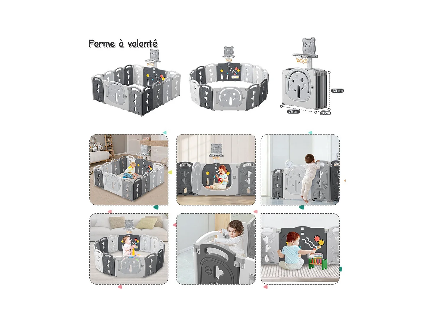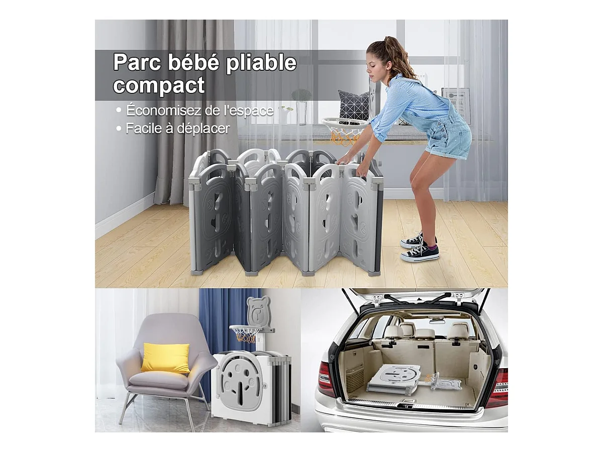 Parc Bébé Yoleo - 12+2 panneaux modulable - avec panier de basket - plastique écologique - 153x153x60cm