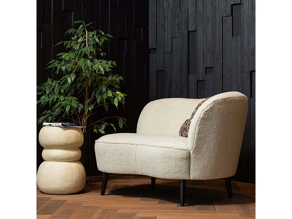 Tabouret bas coffre de rangement en tissu bouclette et métal noir - Crème - ESDALO