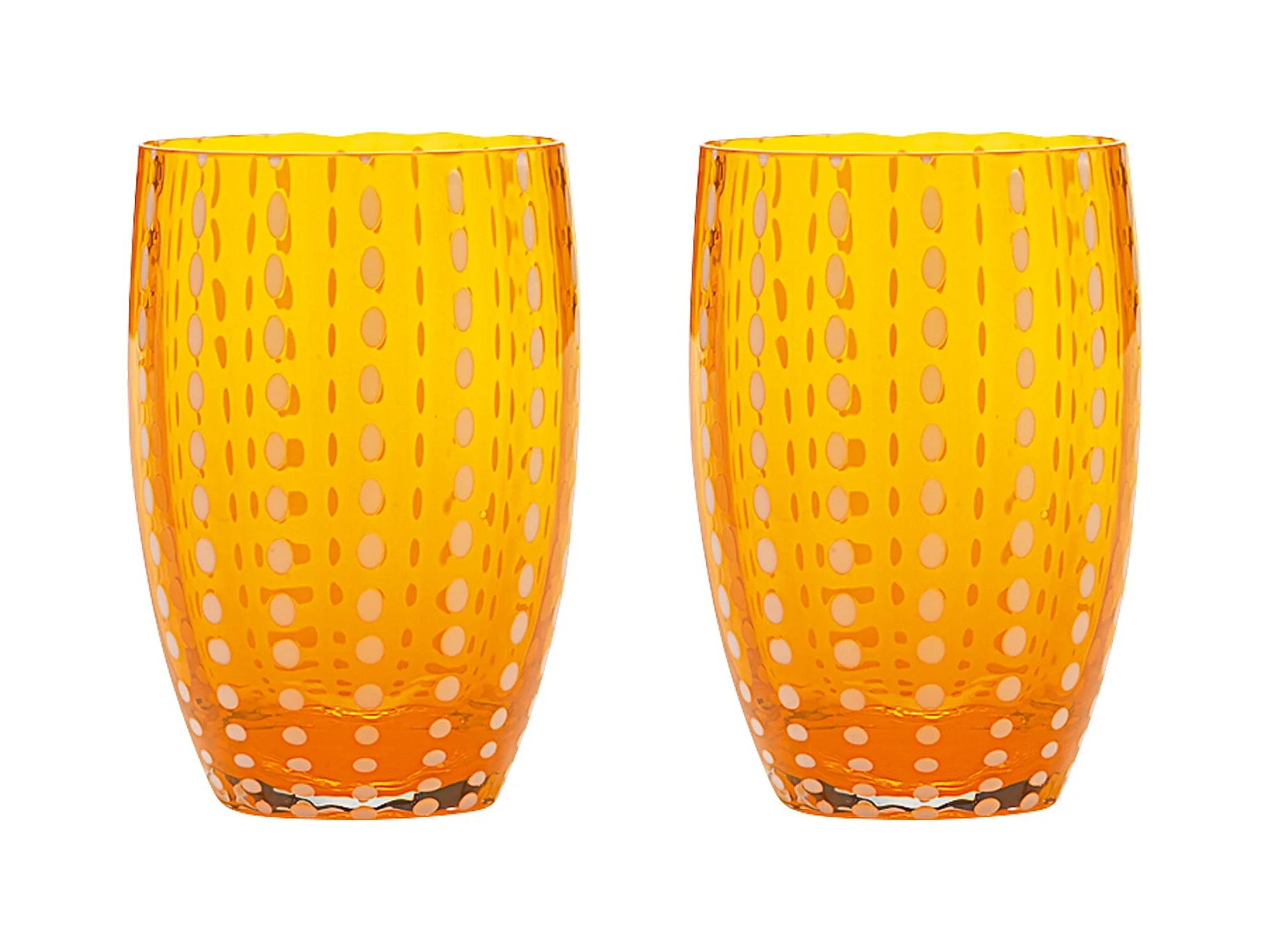 Zafferano Perle Verre Orange – verre soufflé 32cl, fait main, set de 2 verres artisanaux pour eau ou cocktails, style coloré