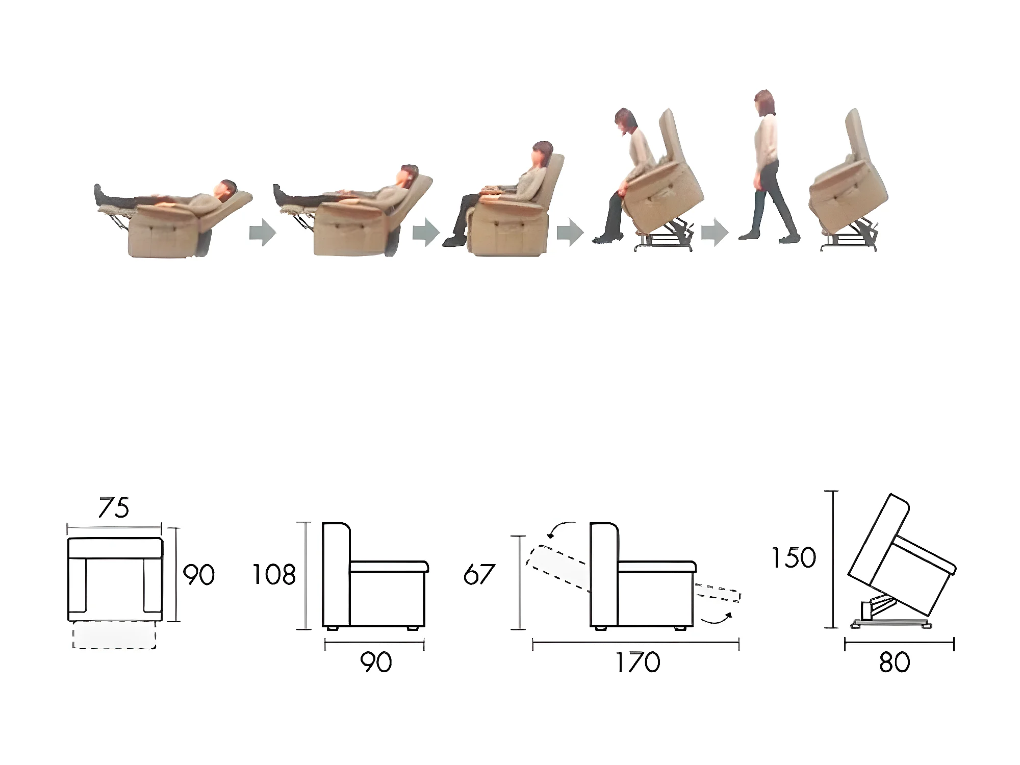 ZAMORA - Fauteuil Releveur Tissu Gris Foncé