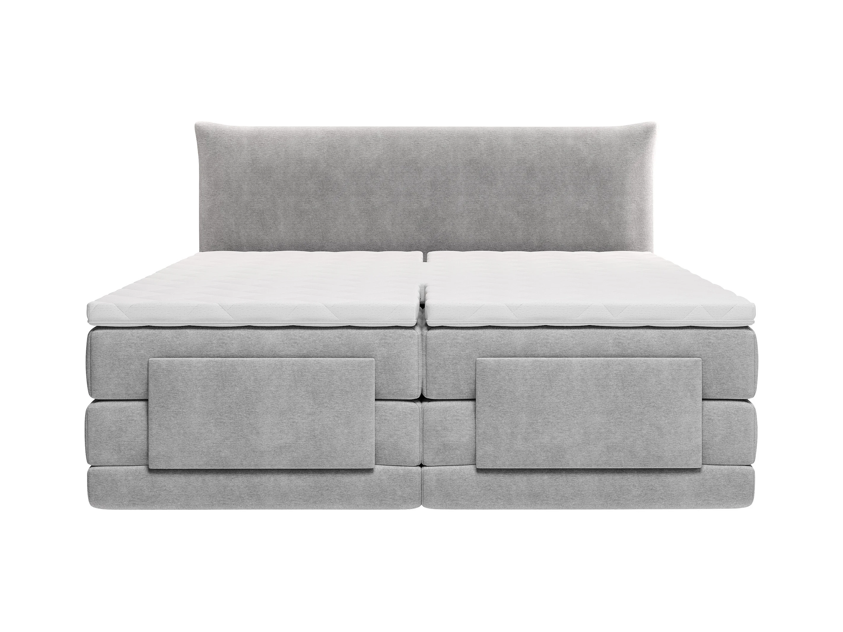 Ensemble complet boxspring tête de lit + sommiers relaxation électrique + matelas + surmatelas - 2 x 80 x 200 cm - Tissu - Gris clair - ZANORO de PALACIO