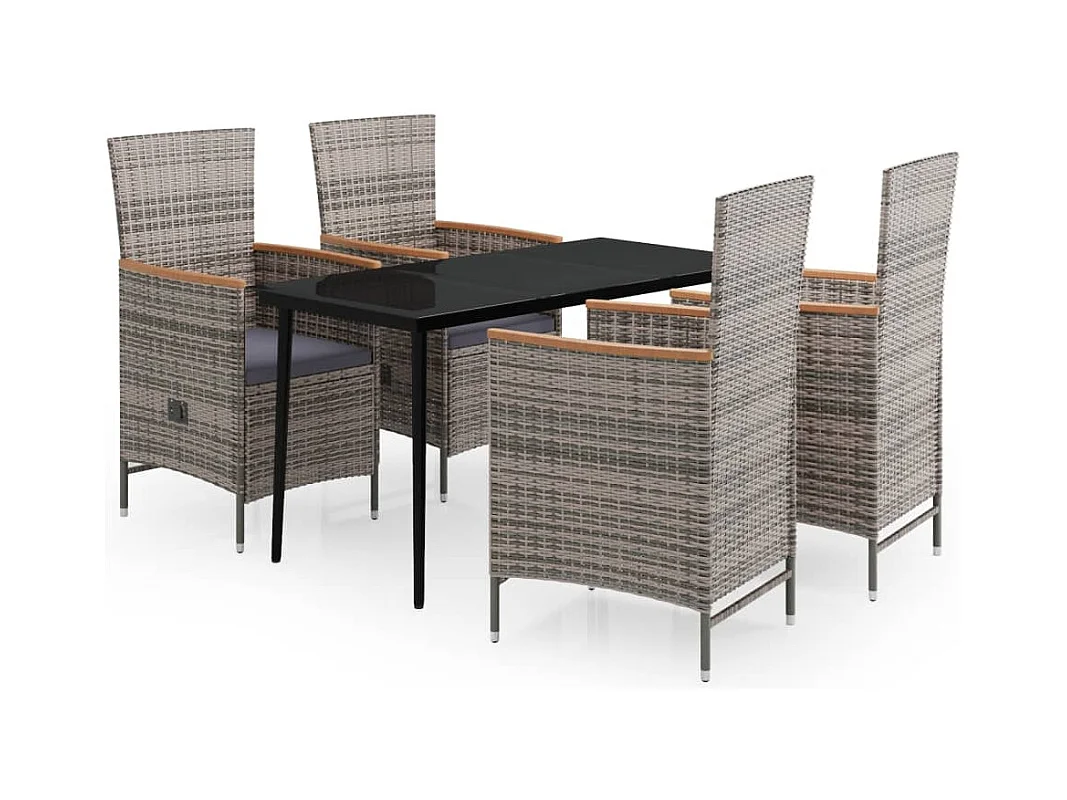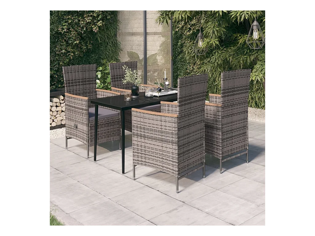 Zeldrik Ensemble à manger de jardin avec coussins 5 pcs Gris