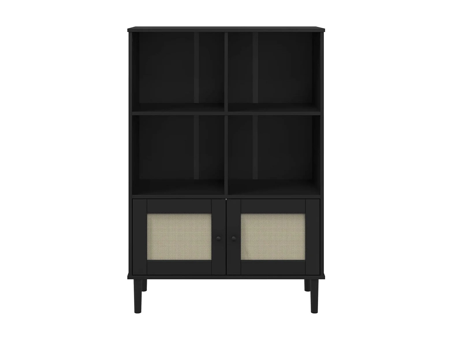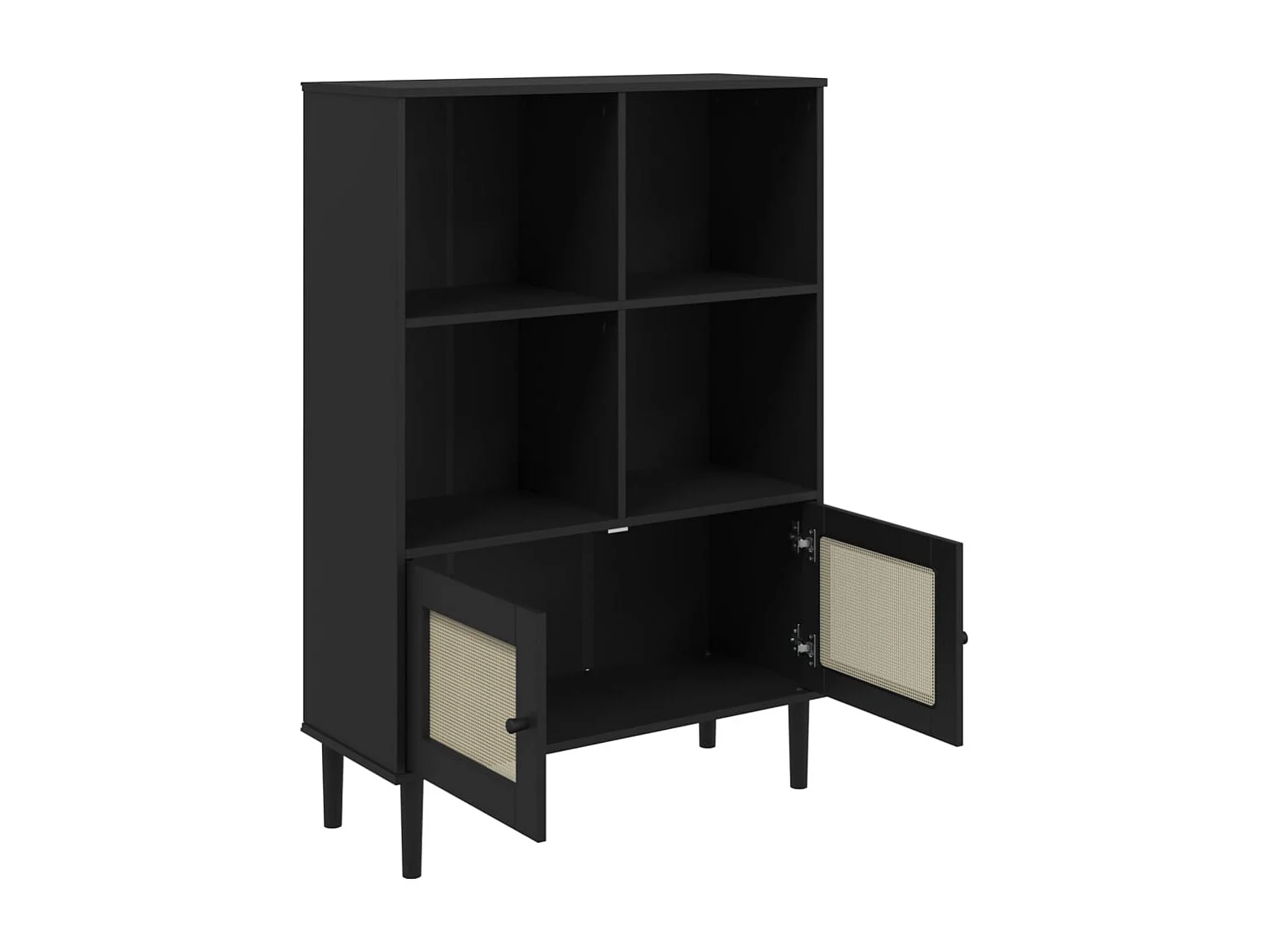 Zelyra Bibliothèque SENJA aspect de rotin noir bois massif de pin