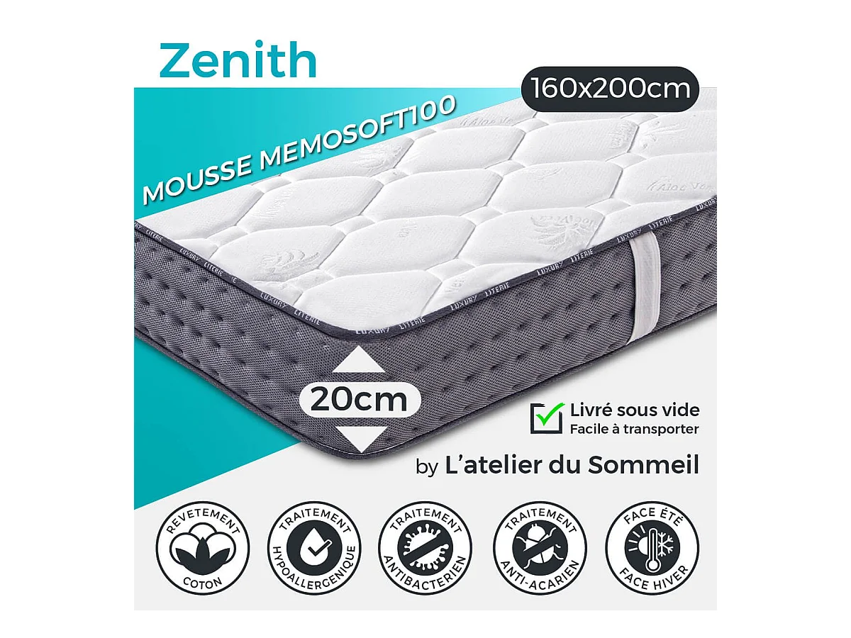 ZENITH - Matelas 160x200 cm Mousse haute résilience Soutien ferme Ep.20cm