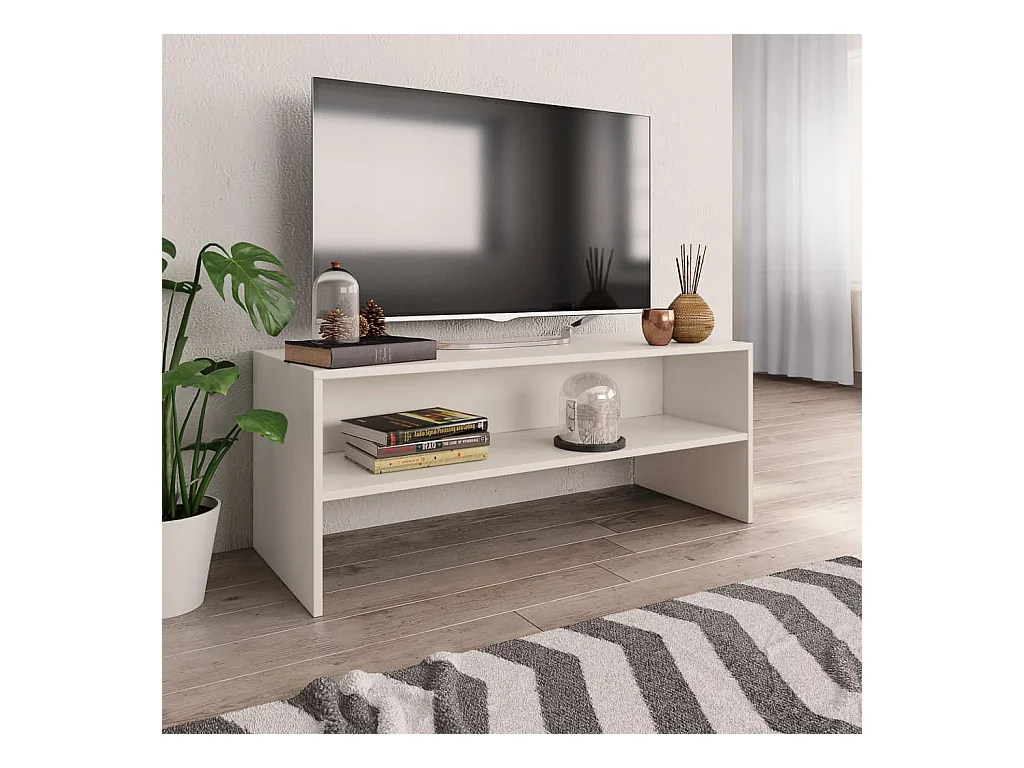 Lin Meuble TV blanc 100x34,5x44,5 cm bois d'ingénierie