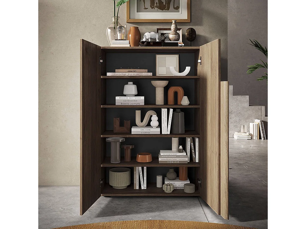 ZEUS - Meuble d'entrée 2 portes 4 étagères aspect bois finition mercure