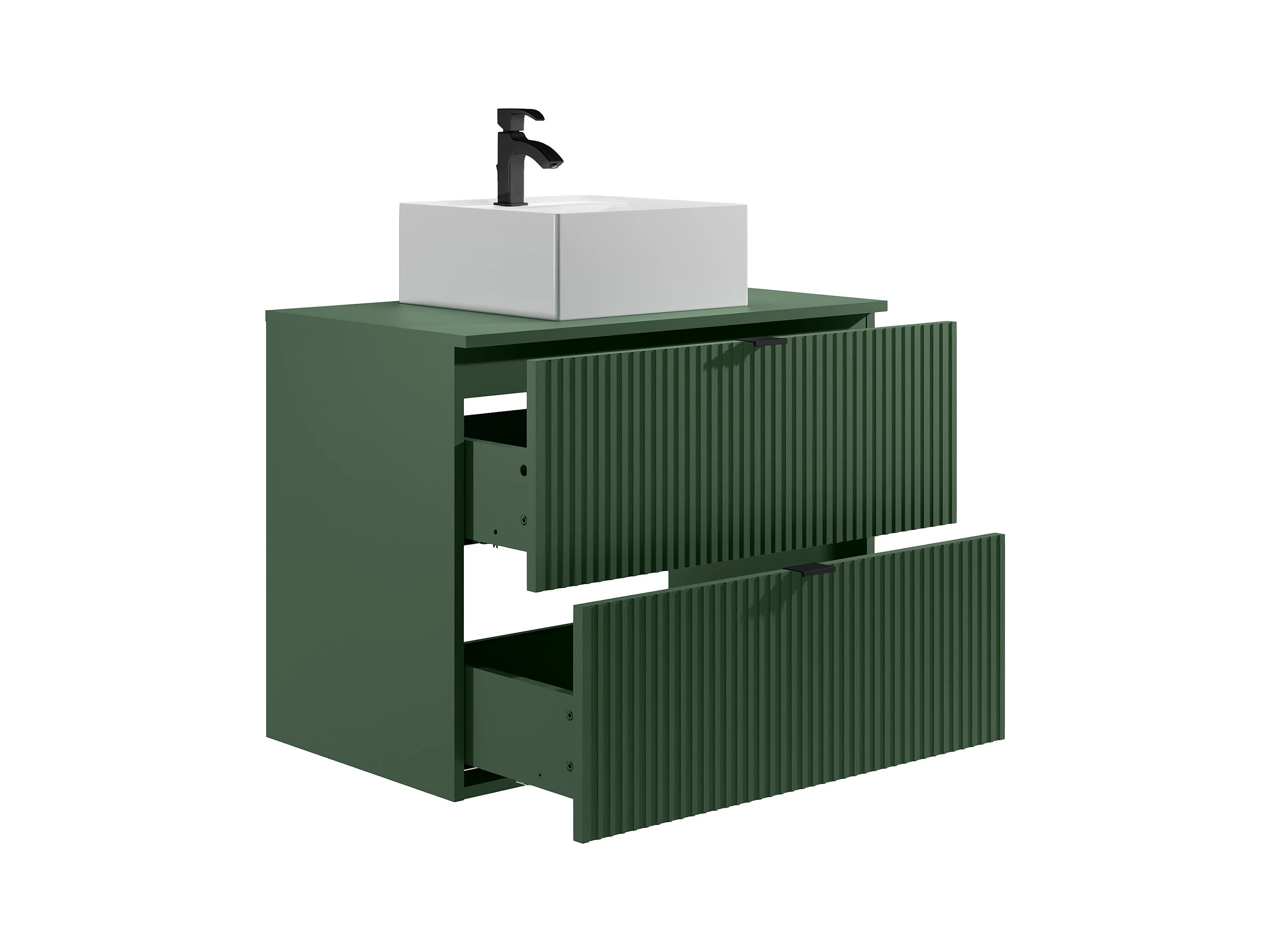 Meuble de salle de bain suspendu strié avec vasque à poser ronde - Vert mat - 80 cm - ZEVINI