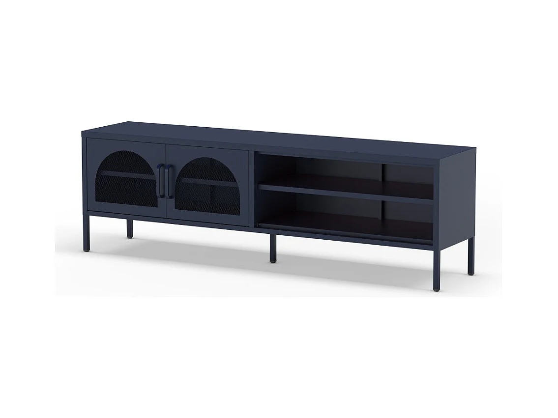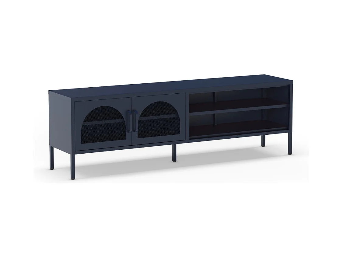 Zio - Meuble TV 2 portes en métal L160cm - Bleu nuit