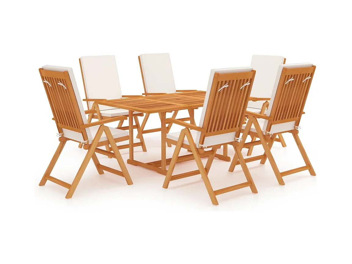 Zoran Ensemble à manger de jardin 7 pcs coussins Bois de teck massif